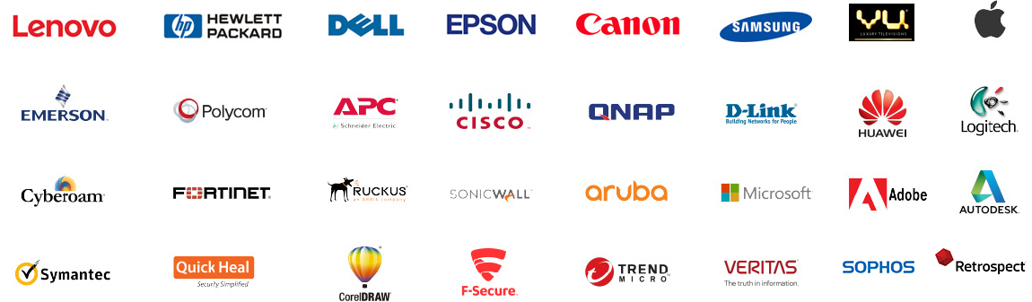 We are Platinum Business Partner with Lenovo and registered partner with all IT major brands like Dell, HP, Microsoft, Adobe, Quick Heal, Trend Micro, Symantec, Cisco, Aruba, Ruckus, D-Link, Epson, VU, Huawei, APC, Cyberoam, Sonicwall, Fortinet and many more.